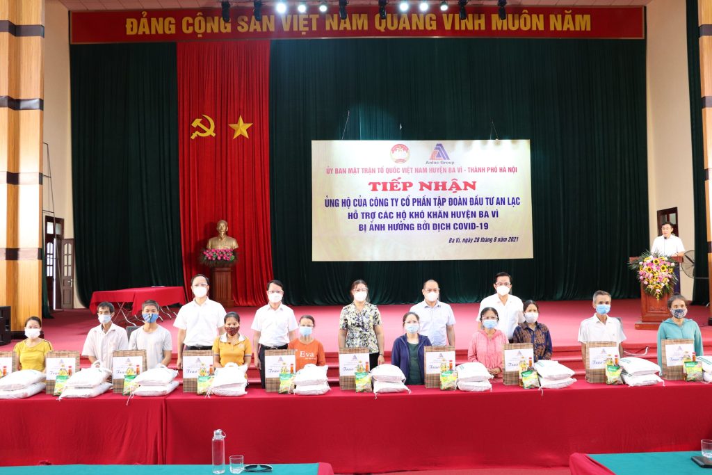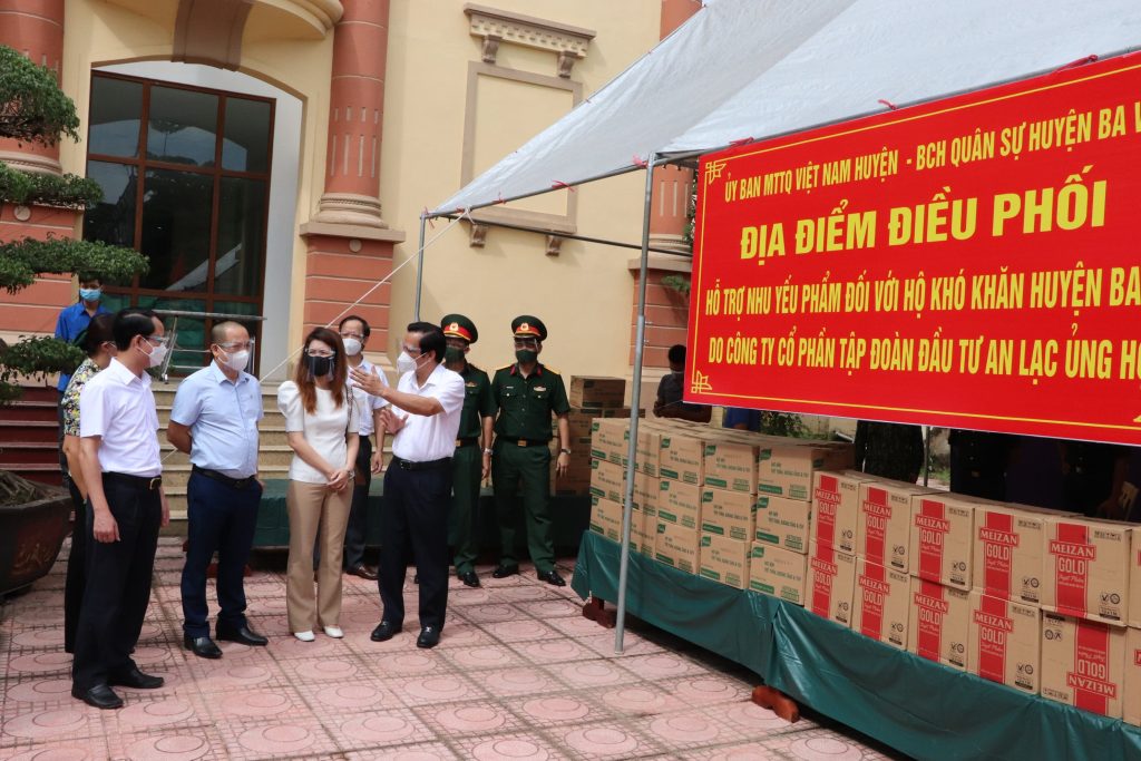 Sau chương trình tiếp nhận, Ủy ban MTTQ Việt Nam huyện Ba Vì phối hợp với Ban CHQS huyện tổ chức điều phối các nhu yếu phẩm do Công ty Cổ phần Tập đoàn đầu tư An Lạc hỗ trợ cho Ủy ban MTTQ các xã, thị trấn trao đến tận tay các hộ gia đình khó khăn tại địa phương.