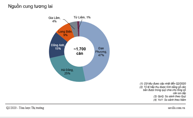 Nguồn cung mới trong năm 2020 chủ yếu ở khu vực ven của các quận trung tâm do quỹ đất hạn chế để phát triển các dự án biệt thự/nhà liền kề với quy mô vừa tới lớn. Những dự án biệt thự/nhà liền kề với quy mô lớn đều tập trung ở các khu ngoại thành như Vinhomes Wonder Park ở Đan Phượng, BRG-Sumitomo Smart City ở Đông Anh, Xuân Mai Smart City ở Chương Mỹ hay hai khu đô thị Vinhomes ở Hòa Lạc. Việc đầu tư phát triển tới các khu đô thị vệ tinh sẽ ngày rõ ràng hơn.